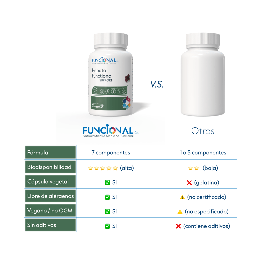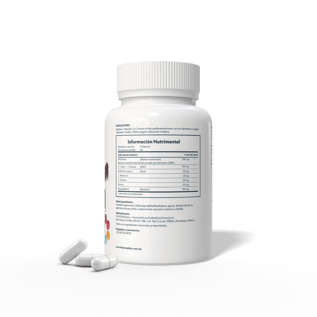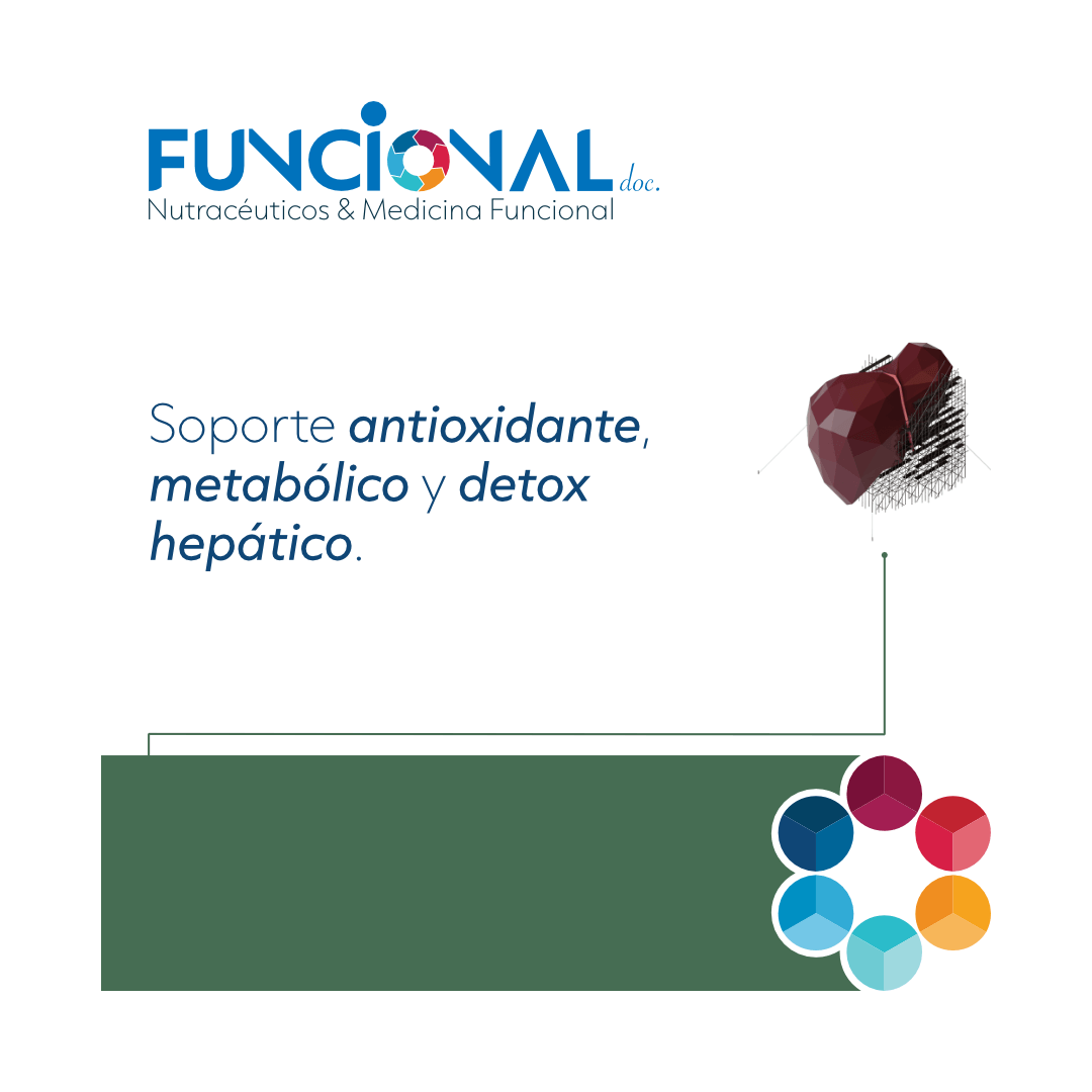 Hepato Functional Support de FUNCIONALdoc es una fórmula avanzada diseñada para ofrecer un soporte nutricional estratégico al hígado. Este suplemento combina antioxidantes clave y extractos botánicos de alta pureza que trabajan en sinergia para promover las vías naturales de desintoxicación y el equilibrio metabólico.